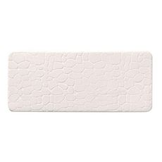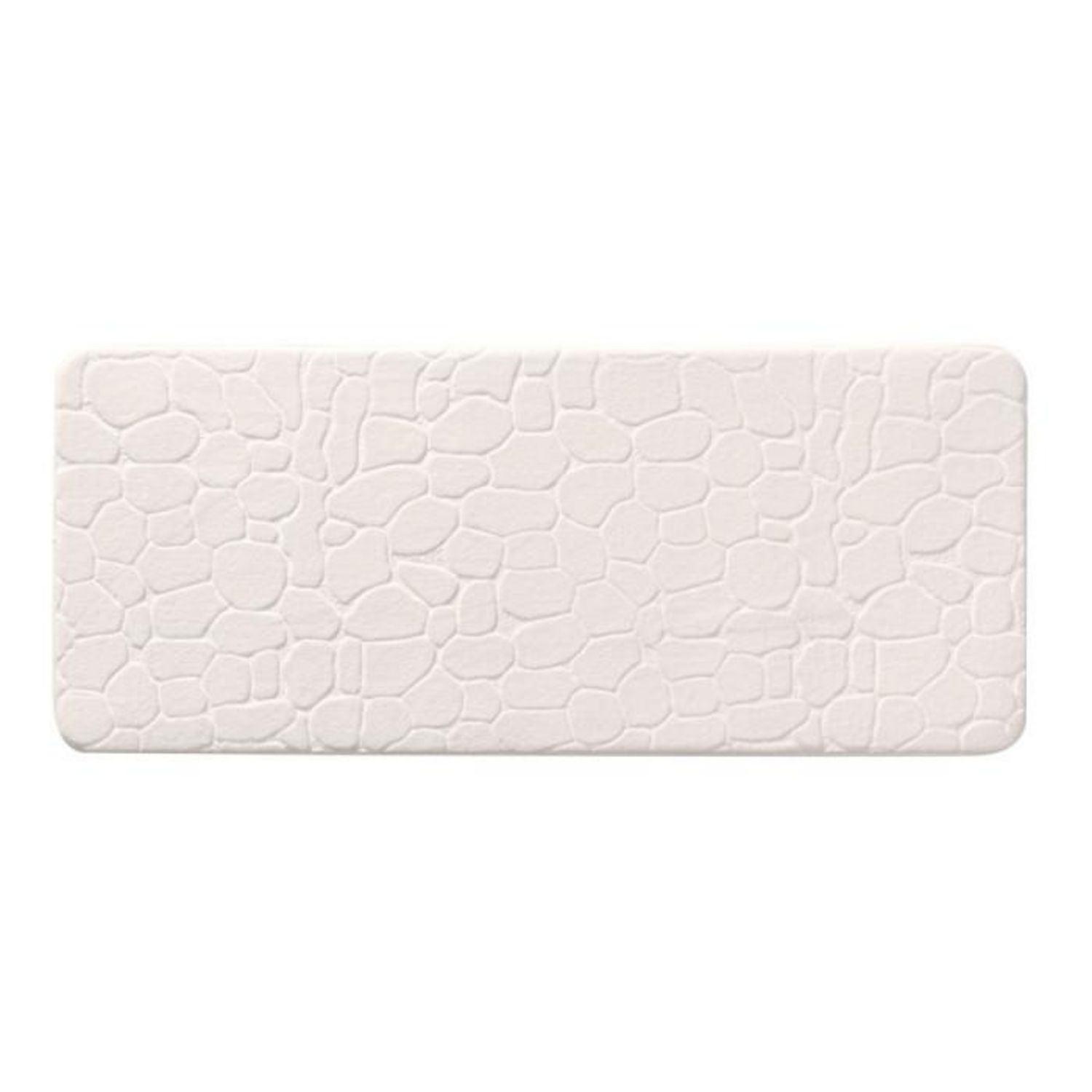 Informations Techniques : Dimensions : L. 120 x l. 50 x H. 1 cm Matière : 100% Polyester Spécificités : Déco & Pratique Tapis de bain microfibre Mémoire de forme Imprimé galet relief Antidérapant Forme rectangulaire Poids : 0,51 kg Couleur : Blanc