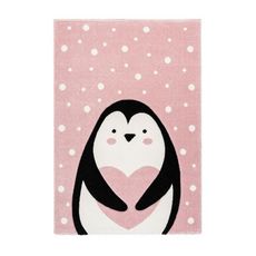 Tapis de Chambre Enfant Pingouin Gidya Rose