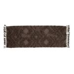 Informations Techniques : Dimensions : L. 200 x l. 70 x H. 1,5 cm Matière : Coton Spécificités : Tendance & Déco Tapis rectangulaire Tissé à la main Avec franges Motifs tuftés Poids : 1,75 kg Couleur : Marron