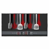 Informations Techniques : Dimensions : L. 120 x l. 50 cm Matières : Polyamide & Latex Spécificités : Antidérapant Pratique & Déco Imprimé : Ustensiles de cuisine Texte : Cuisine colorée Couleur : Gris