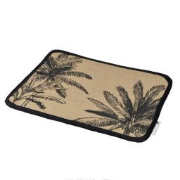 Informations Techniques : Dimensions : L. 45 x l. 35 x H. 1 cm Matières : Fibres Végétales, Jute & Polyester Spécificités : Pratique & Utile Tapis de Repas Pour Chien & Chat Forme Rectangulaire Antidéparant Déco Exotique & Naturelle Poids : 0,105 kg Couleur : Beige & Noir
