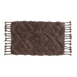 Informations Techniques : Dimensions : L. 80 x l. 50 x H. 1,25 cm Matière : Coton Spécificités : Pratique & Doux Tapis déco Pour salle de bain Motifs tuftés Forme rectangulaire Poids : 0,50 kg Couleur : Marron