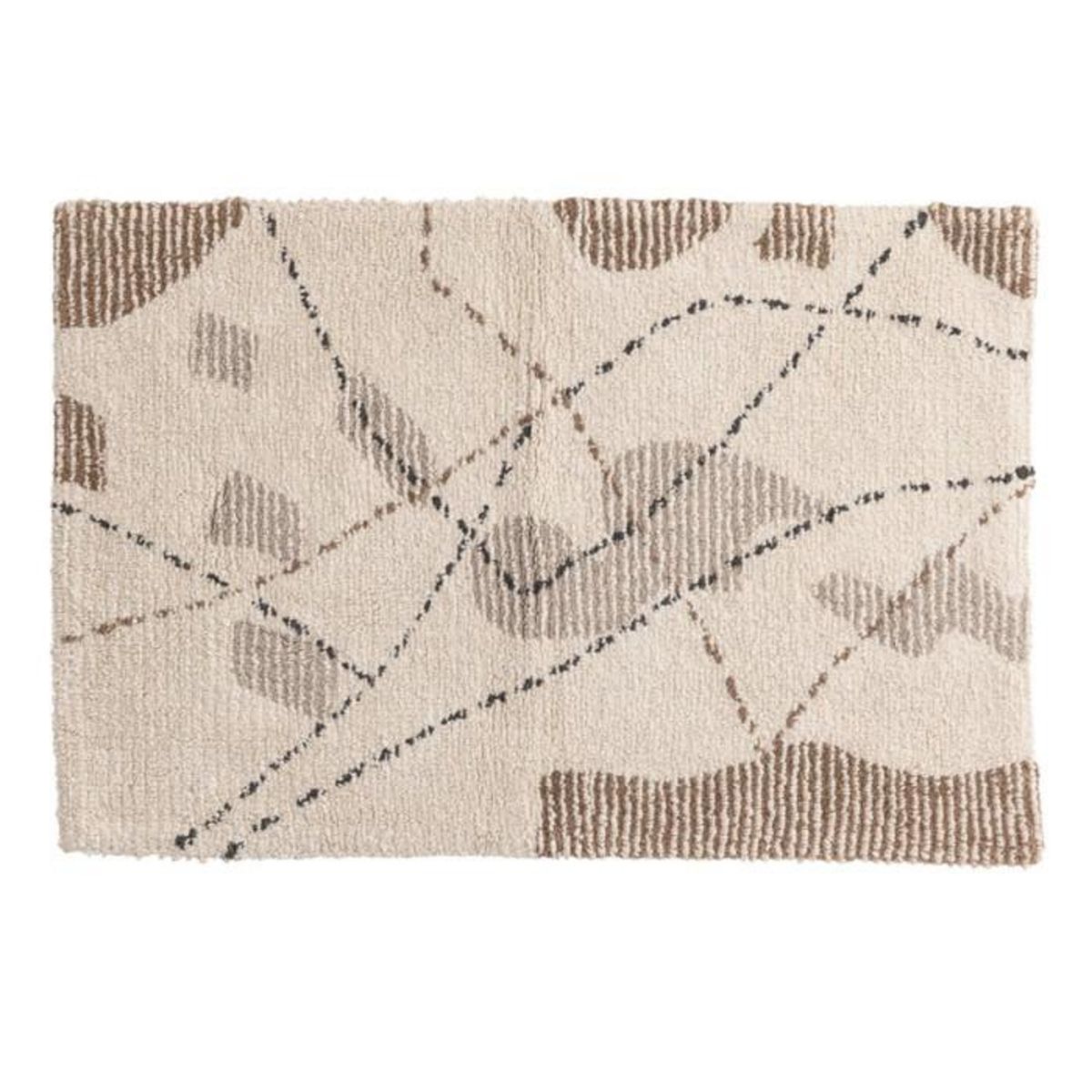 Informations Techniques : Dimensions : L. 90 x l. 60 x H. 1,5 cm Matière : Coton Spécificités : Déco & Élégant Tapis pour salle de bain Motif abstrait Forme rectangulaire Poids : 1 kg Couleur : Multicolore