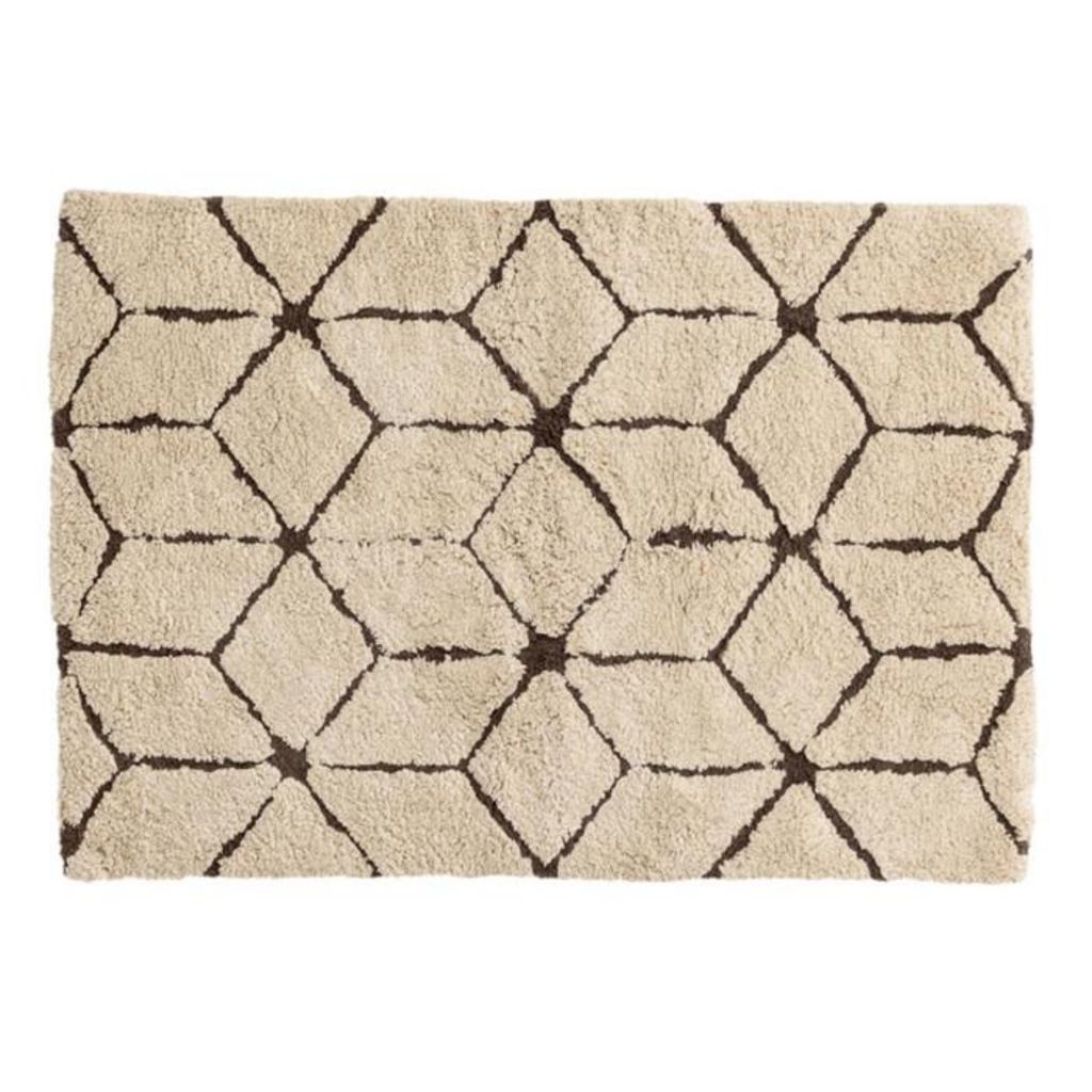 Informations Techniques : Dimensions : L. 90 x l. 60 x H. 1,5 cm Matière : Coton Spécificités : Confortable & Doux Tapis pour salle de bain Motif géométrique Forme rectangulaire Poids : 1,2 kg Couleur : Marron