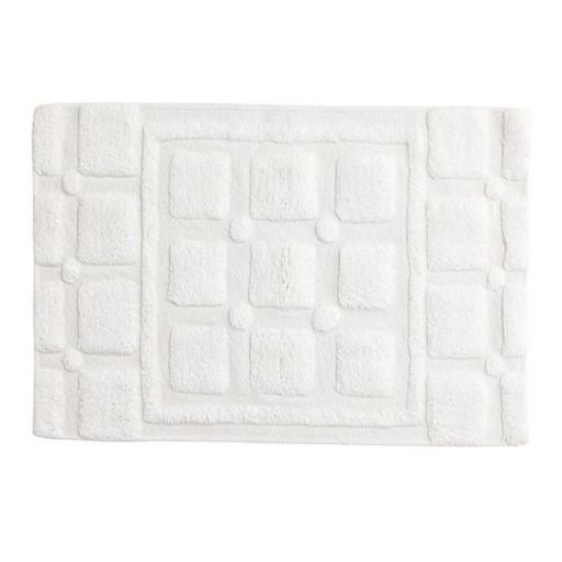 Informations Techniques : Dimensions : L. 90 x l. 60 x H. 1,5 cm Matière : Coton Spécificités : Moderne & Doux Tapis pour salle de bain Motif géométrique en relief Forme rectangulaire Poids : 0,8 kg Couleur : Blanc
