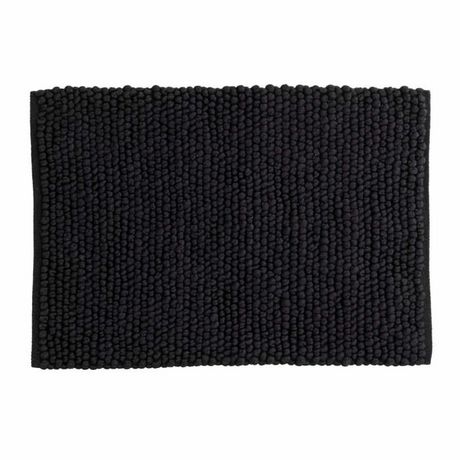 Informations Techniques : Dimensions : L. 80 x l. 50 x H. 1,5 cm Matières : Coton & Polyester Spécificités : Pratique & Tendance Tapis de salle de bain Tissage avec boucles Forme rectangulaire Poids : 0,9 kg Couleur : Noir