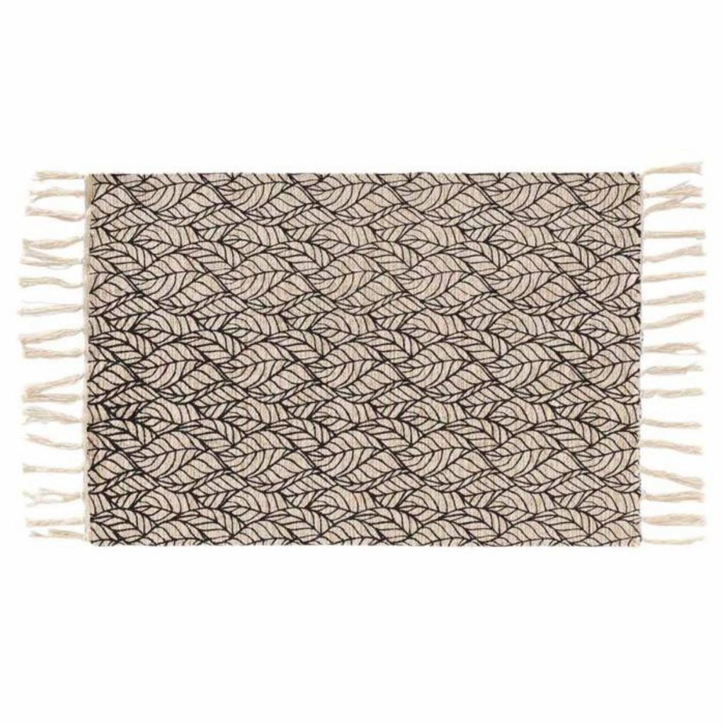 Informations Techniques : Dimensions : L. 60 x l. 90 cm Matières : Coton & Jute Spécificités : Pratique & Utile Tapis Déco à Franges Forme Rectangulaire Motif Imprimé Couleur : Noir