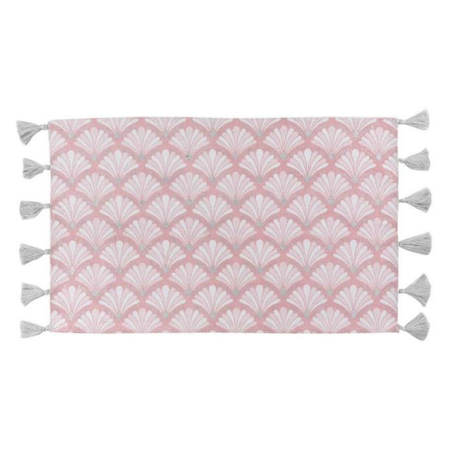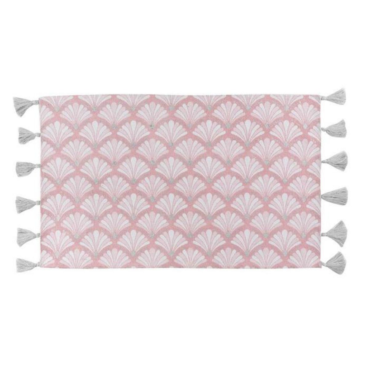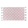 Informations Techniques : Dimensions : L. 80 x l. 50 cm Matière : 100% Coton Spécificités : Doux & Tendance Tapis déco Forme Rectangulaire Avec Imprimé & Pompons Couleur : Rose