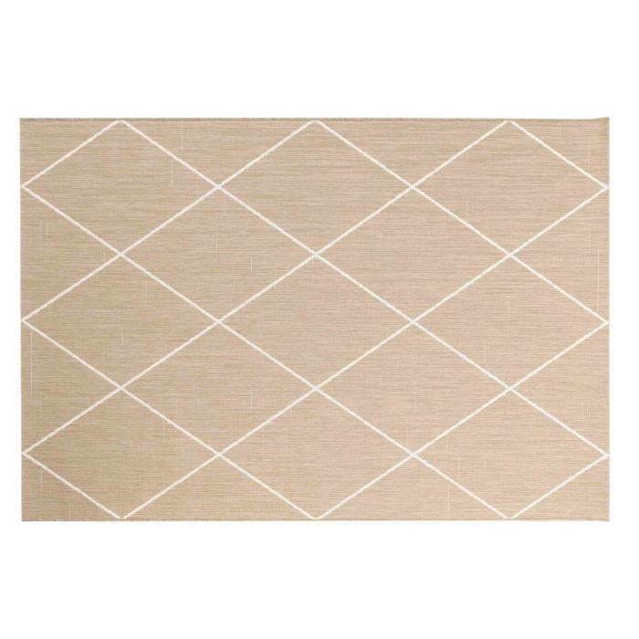 Informations Techniques : Dimensions : L. 230 x l. 160 cm Matière : 100% Polypropylène Spécificités : Tendance & Utile Tapis déco tissé Imprimé losange Forme rectangulaire Poids : 3,78 kg Couleur : Naturel