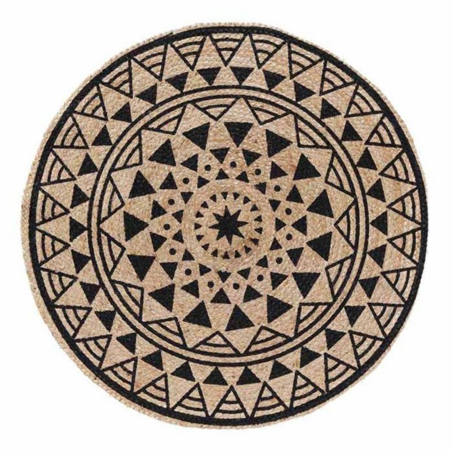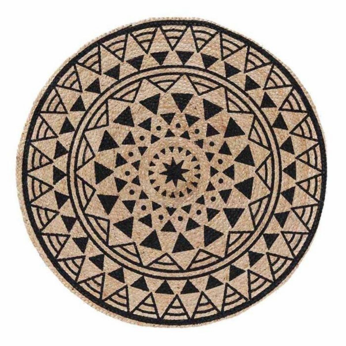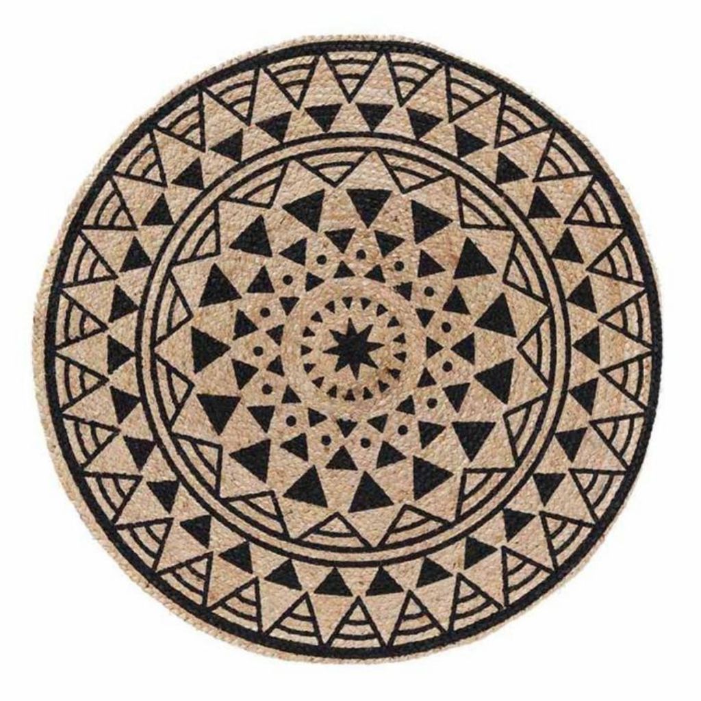 Tapis Déco en Jute Imprimé Silha 90cm Noir