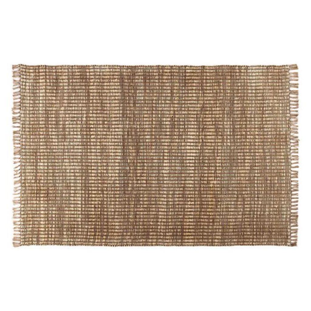 Informations Techniques : Dimensions : L. 290 x l. 200 x H. 0,5 cm Matière : Jute Spécificités : Robuste & Tendance Tapis rectangulaire Avec franges Poids : 14 kg Couleur : Naturel