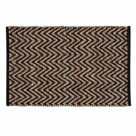 Informations Techniques : Dimensions : L. 60 x l. 90 cm Matières : Jute & Coton Spécificités : Design & Fonctionnel Tapis Déco Forme Rectangulaire Motif Zig Zag Couleur : Noir & Beige