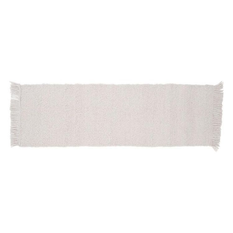 Informations Techniques : Dimensions : L. 250 x l. 80 x H. 2 cm Matière : Laine Spécificités : Tendance & Déco Tapis avec franges Tissé à la main Texture nouée Forme rectangulaire Poids : 8,2 kg Couleur : Blanc