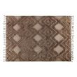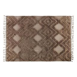 Informations Techniques : Dimensions : L. 400 x l. 300 x H. 2,7 cm Matière : Laine Spécificités : Déco & Cosy Tapis rectangulaire Poils courts denses Motifs en relief Franges tressées Poids : 30,8 kg Couleur : Marron Foncé
