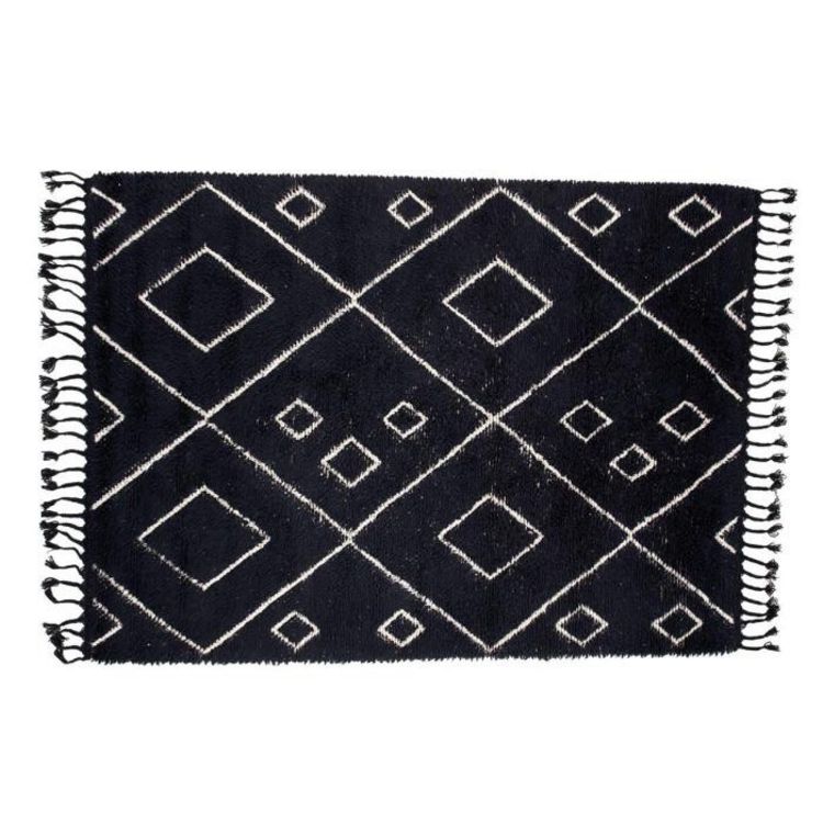 Informations Techniques : Dimensions : L. 300 x l. 202 x H. 4 cm Matière : 100% Laine Spécificités : Tendance & Moderne Tapis rectangulaire Poils épais et denses Motifs géométriques Poids : 13,4 kg Couleur : Noir