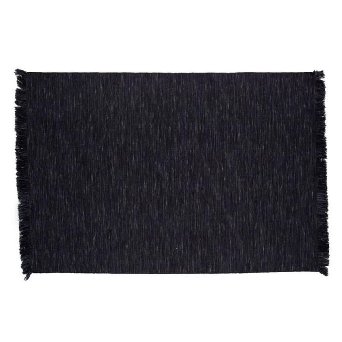Informations Techniques : Dimensions : L. 300 x l. 252 x H. 0,7 cm Matières : 91% Laine, 7% Coton & 2% Polyester Spécificités : Moderne & Déco Tapis tissé Avec franges Motif moucheté Forme rectangulaire Poids : 17,9 kg Couleur : Noir