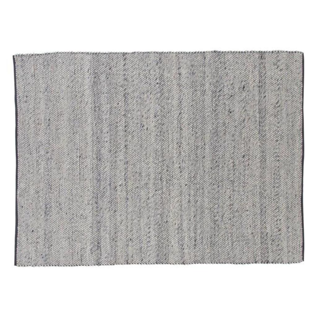 Informations Techniques : Dimensions : L. 243 x l. 171 x H. 1 cm Matières : 80% Laine & 20% Coton Spécificités : Déco & Confortable Tapis rectangulaire Tissé à la main Motif moucheté Poids : 10,2 kg Couleur : Argent