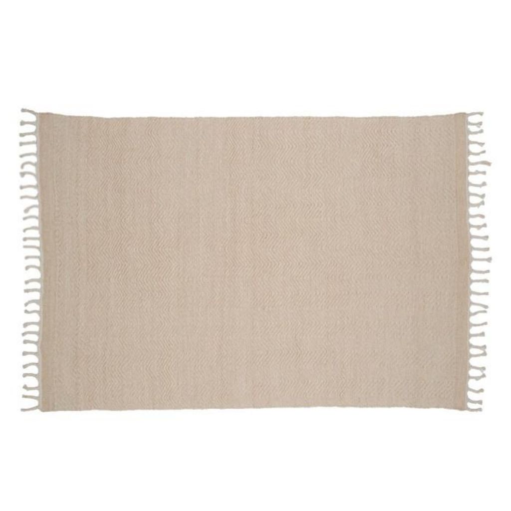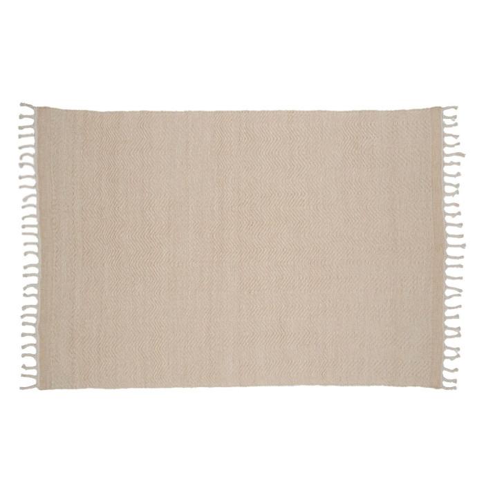 Informations Techniques : Dimensions : L. 300 x l. 203 x H. 0,9 cm Matières : 59% Laine & 41% Coton Spécificités : Élégant & Déco Tapis tissé Franges décoratives Forme rectangulaire Poids : 10,1 kg Couleur : Beige & Blanc