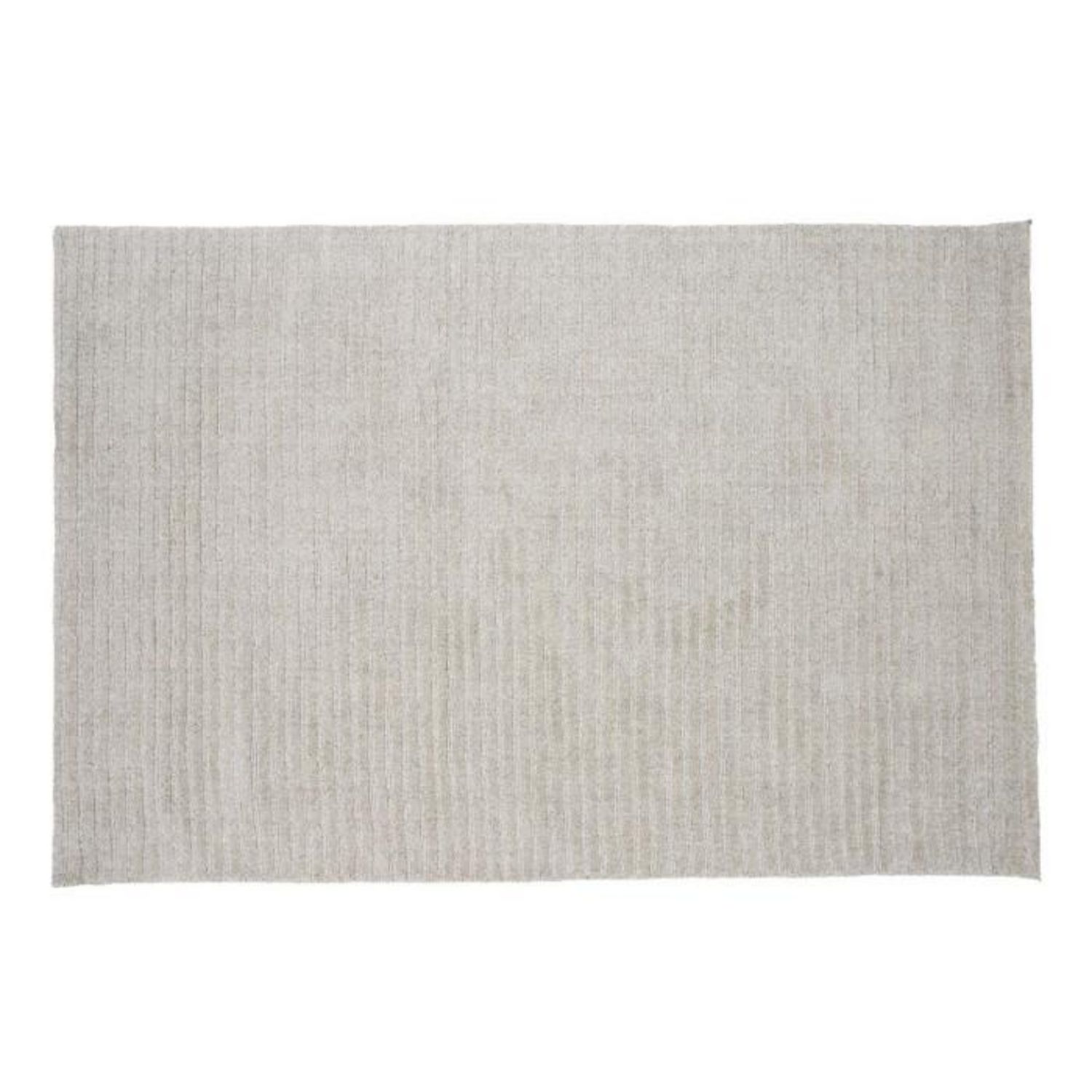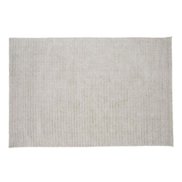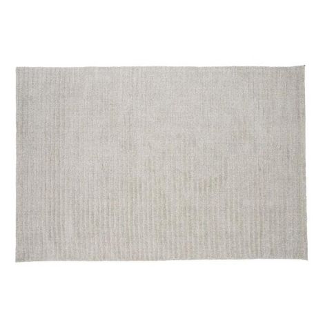 Informations Techniques : Dimensions : L. 230 x l. 162 x H. 1,5 cm Matières : 60% Laine & 40% Coton Spécificités : Moderne & Déco Tapis rectangulaire Motif nervuré Franges denses et courtes Poids : 13,2 kg Couleur : Gris Clair