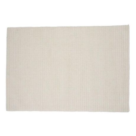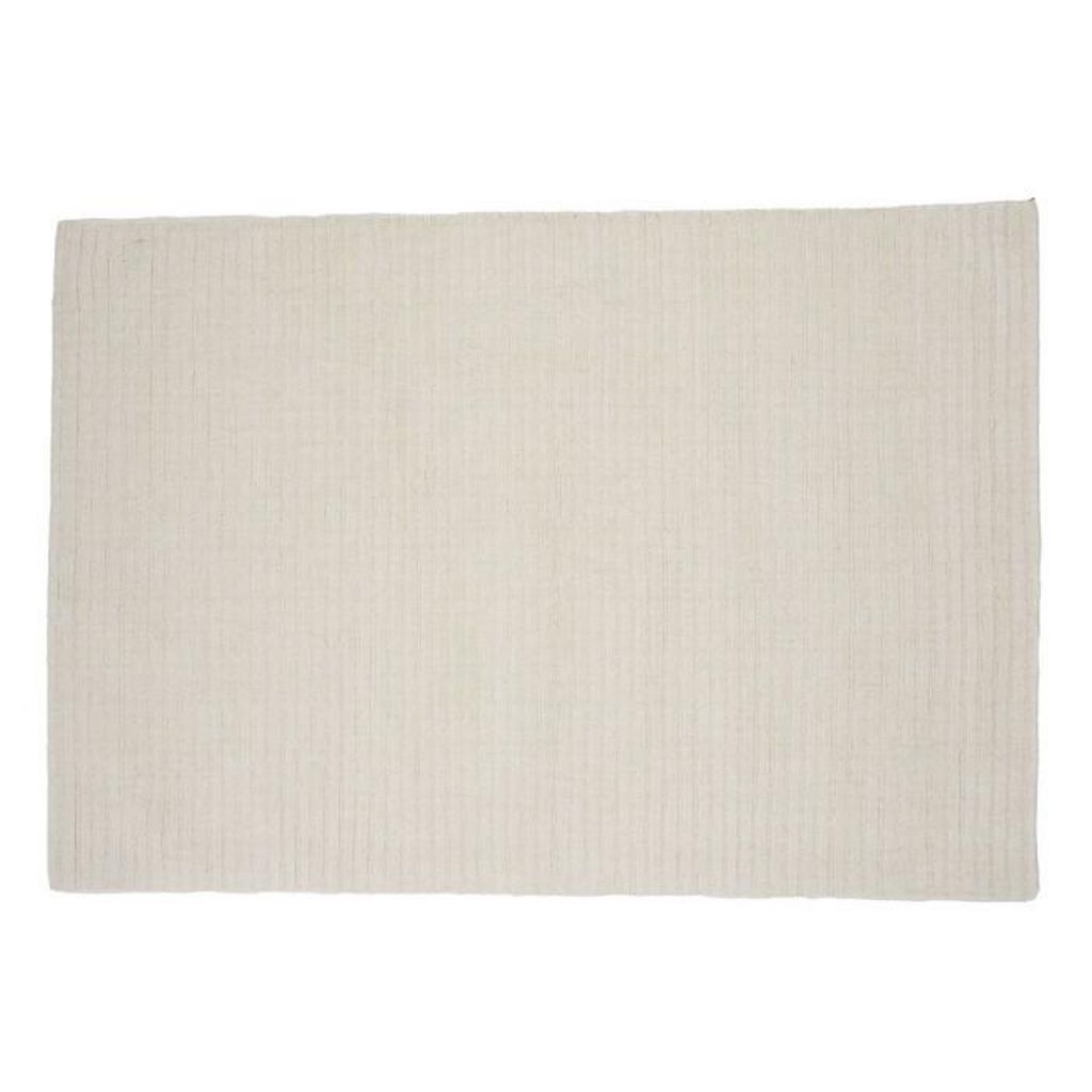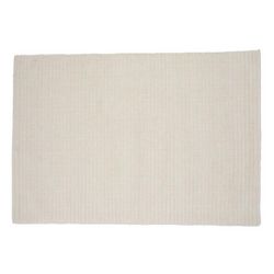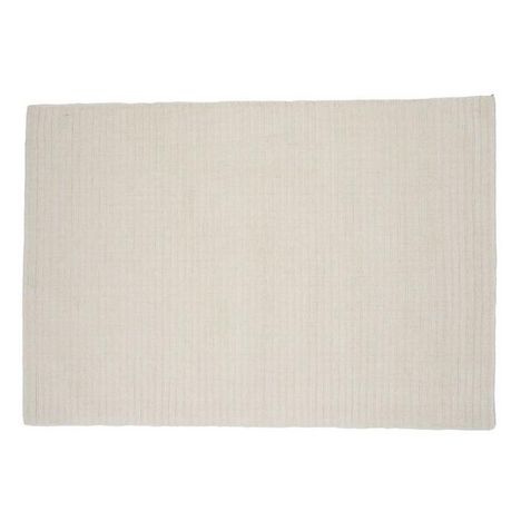Informations Techniques : Dimensions : L. 300 x l. 202 x H. 1,5 cm Matières : 60% Laine & 40% Coton Spécificités : Moderne & Déco Tapis rectangulaire Motif nervuré Franges denses et courtes Poids : 20 kg Couleur : Blanc