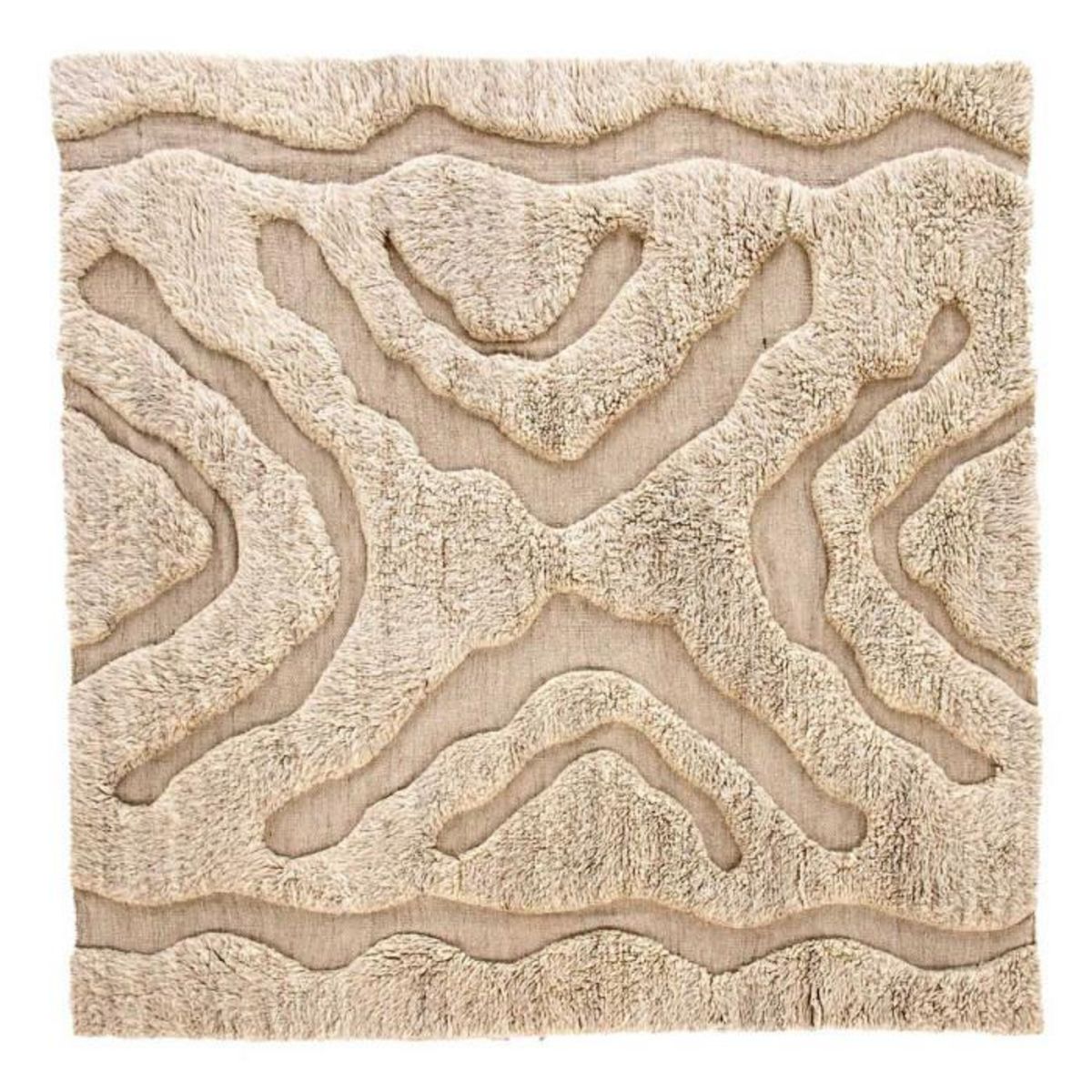 Informations Techniques : Dimensions : L. 402 x l. 400 x H. 3,8 cm Matières : 93% Laine & 7% Coton Spécificités : Cosy & Tendance Tapis tissé à la main Motif touffeté Forme carrée Poids : 43,5 kg Couleur : Beige