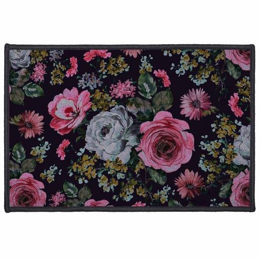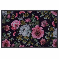 Informations Techniques : Dimensions : L. 60 x l. 40 cm Matières : Dessus : Nylon Dessous : Latex Spécificités : Chic & Design Tapis Déco Imprimé Forme rectangulaire Imprimé fleurs Couleur : Prune & Rose