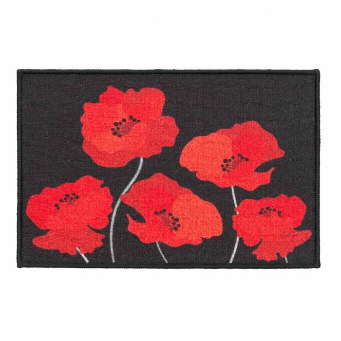Tapis Déco Imprimé Coquelicots 40x60cm Noir & Rouge
