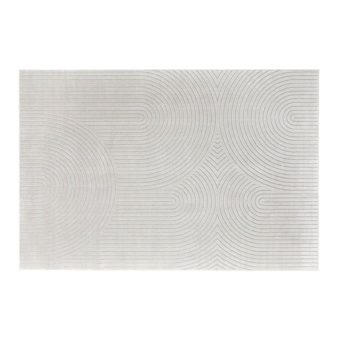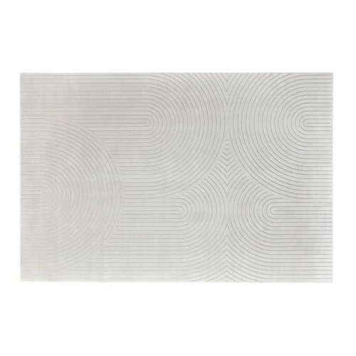Informations Techniques : Dimensions : L. 200 x l. 140 cm Matières : Dessus : 100% Viscose Dessous : 100% Latex Spécificités : Pratique & Design Tapis déco Toucher soyeux Imprimé relief Motif demi cercles Style art déco Finition antidérapante Poids : 1,83 kg Couleur : Naturel