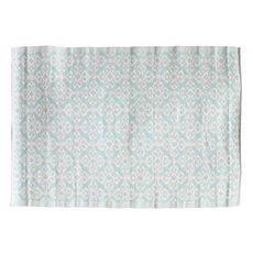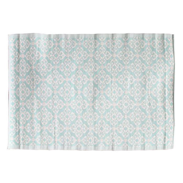 Informations Techniques : Dimensions : L. 180 x l. 120 x H. 1 cm Matière : Polypropylène Spécificités : Déco & Utile Motif imprimé Forme rectangulaire Usage intérieur/extérieur Poids : 1 kg Couleur : Bleu Turquoise & Blanc