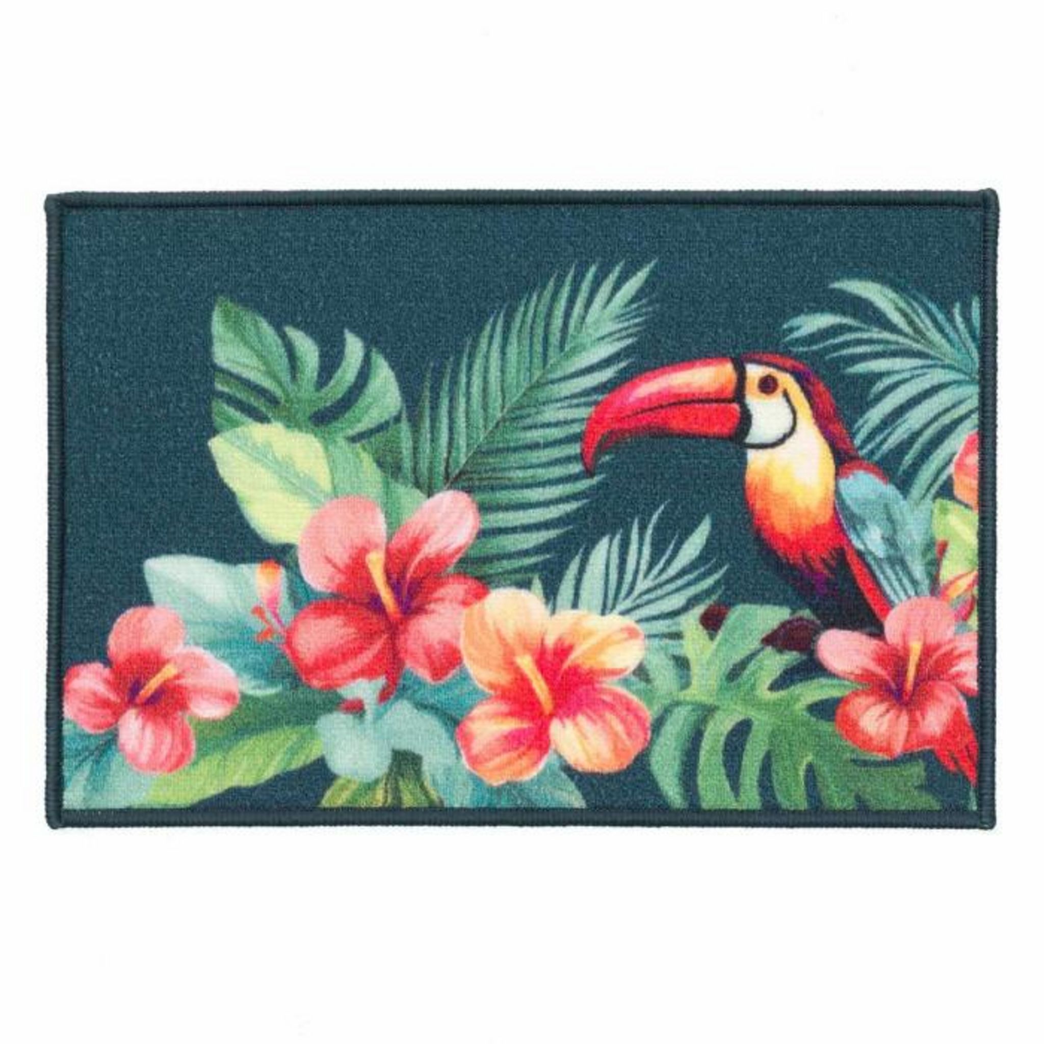 Informations Techniques : Dimensions : L. 60 x l. 40 cm Matières : Dessus : 100% Polyamide Dessous : 100% Latex Spécificités : Antidérapant & Anti-traces Tapis rectangulaire Imprimé tropical Label Oeko-Tex Conseils d'entretien : Lavage à 30° Pas de séchage en machine Pas de repassage Poids : 0,27 k