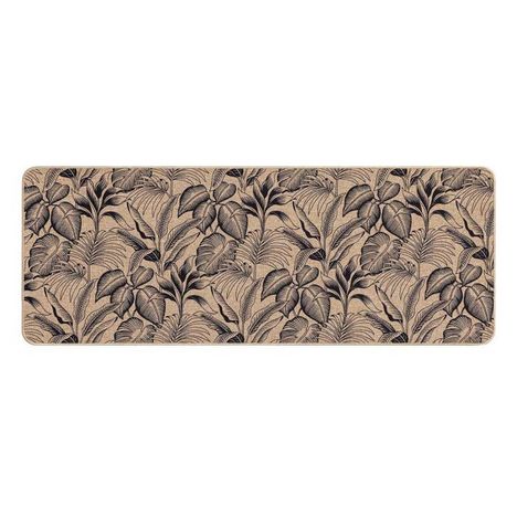 Informations Techniques : Dimensions : L. 120 x l. 45 cm Matières : Dessus : 100% Polyester Dessous : 100% Caoutchouc Spécificités : Antidérapant & Anti-traces Tapis tissé rectangulaire Imprimé végétal Label Oeko-Tex Conseils d'entretien : Lavage à la main Pas de séchage en machine Pas de repassage