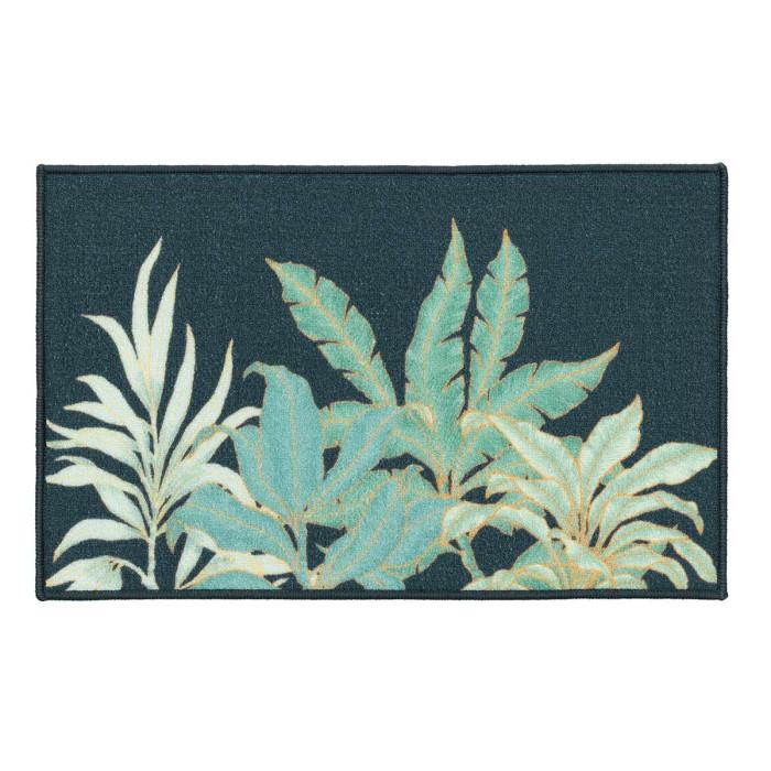 Informations Techniques : Dimensions : L. 80 x l. 50 cm Matières : Dessus : 100% Polyamide Dessous : 100% Latex Spécificités : Antidérapant & Anti-traces Tapis rectangulaire Imprimé végétal Label Oeko-Tex Conseils d'entretien : Lavage à 30° Pas de séchage en machine Pas de repassage Poids : 0,43 kg