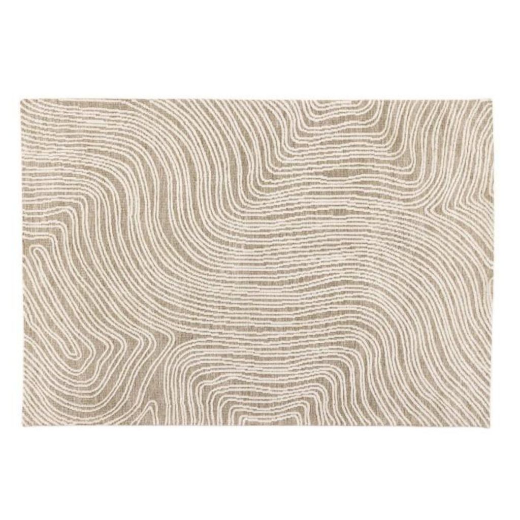Informations Techniques : Dimensions : L. 395 x l. 295 x H. 1,3 cm Matières : Dessus : Polyester Dessous : Coton Spécificités : Déco & Tendance Tapis rectangulaire Design artistique Poids : 29,1 kg Couleur : Beige