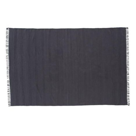 Informations Techniques : Dimensions : L. 230 x l. 160 x H. 1 cm Matière : Coton Spécificités : Pratique & Tendance Tapis design Tissé à la main Détails tressés Franges décoratives Forme rectangulaire Poids : 3,8 kg Couleur : Gris