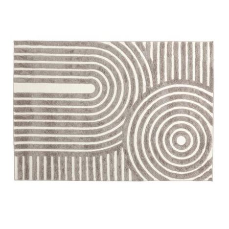Informations Techniques : Dimensions : L. 230 x l. 160 x H. 3,5 cm Matière : Polyester Spécificités : Pratique & Tendance Tapis déco Effet tufté Motifs courbes et lignes Forme rectangulaire Poids : 4,5 kg Couleur : Gris