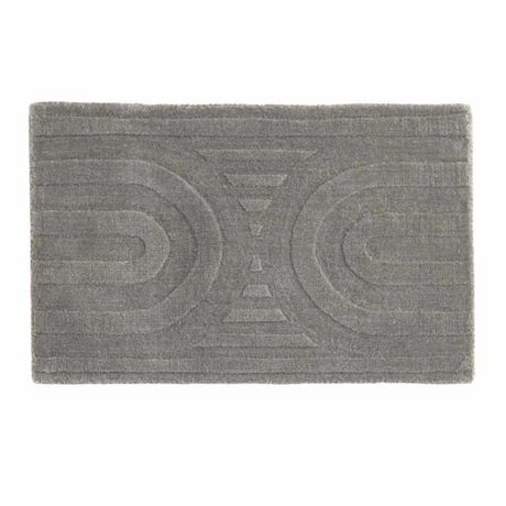 Informations Techniques : Dimensions : L. 80 x l. 50 x H. 1,3 cm Matière : Laine Spécificités : Pratique & Tendance Tapis déco Design scandinave Motifs arcs Forme rectangulaire Poids : 1,5 kg Couleur : Argent
