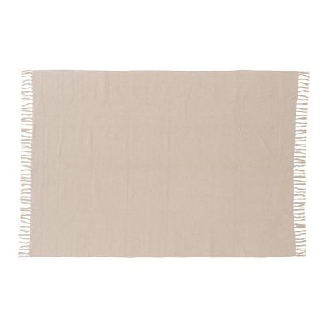 Informations Techniques : Dimensions : L. 240 x l. 170 x H. 0,5 cm Matière : Coton Spécificités : Pratique & Doux Tapis uni Avec franges décorative Forme rectangulaire Poids : 5,18 kg Couleur : Beige