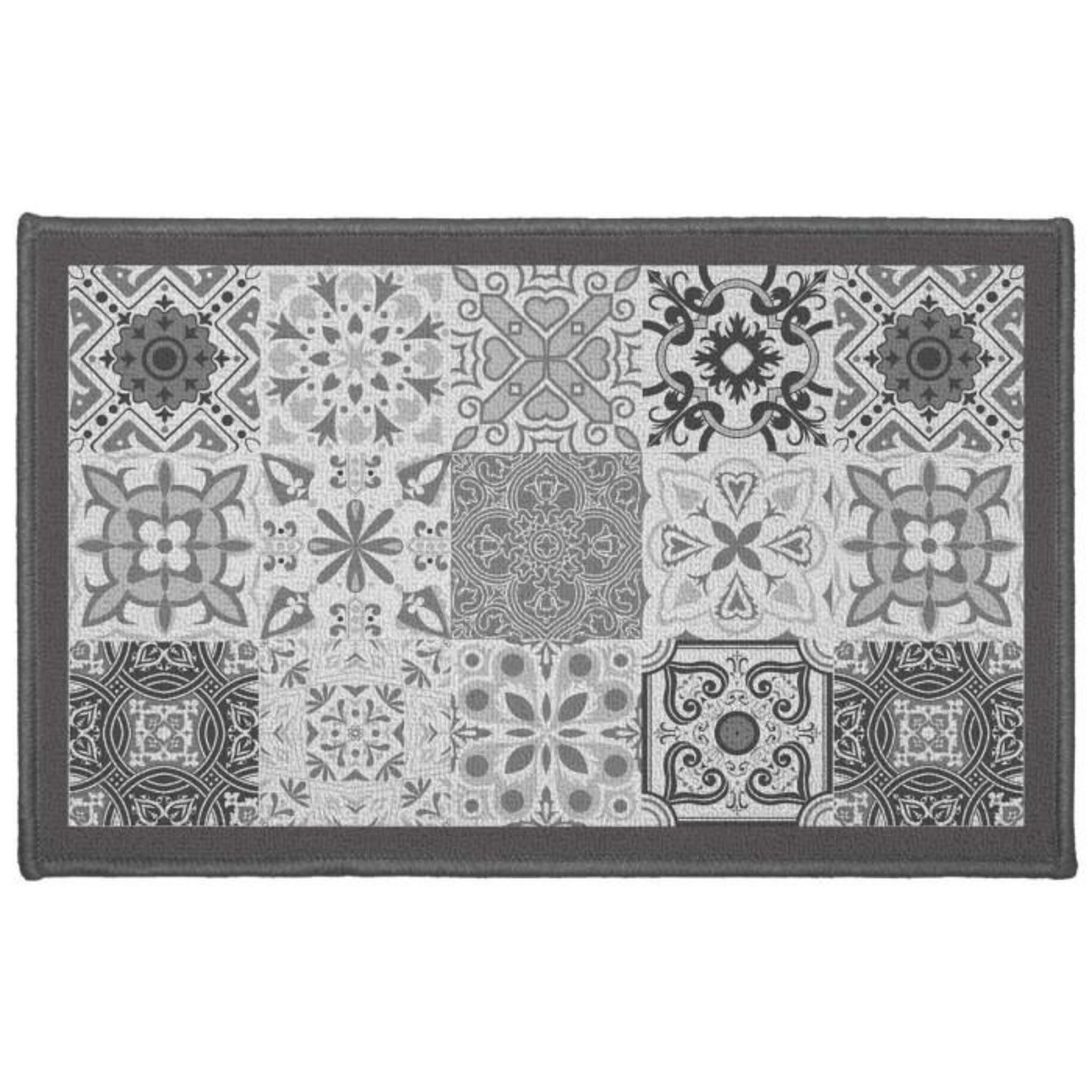 Informations Techniques : Dimensions : L. 80 x l. 50 cm Matières : Polyamide & Latex Spécificités : Antidérapant Imprimé carrelage méditerranéen Pratique & Déco Poids : 0,494 kg Couleur : Gris