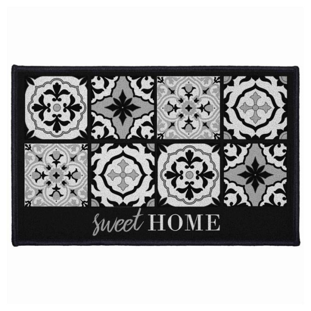 Informations Techniques : Dimensions : L. 80 x l. 50 cm Matières : Polyamide & Latex Spécificités : Antidérapant Pratique & Déco Texte : Sweet Home Couleur : Noir