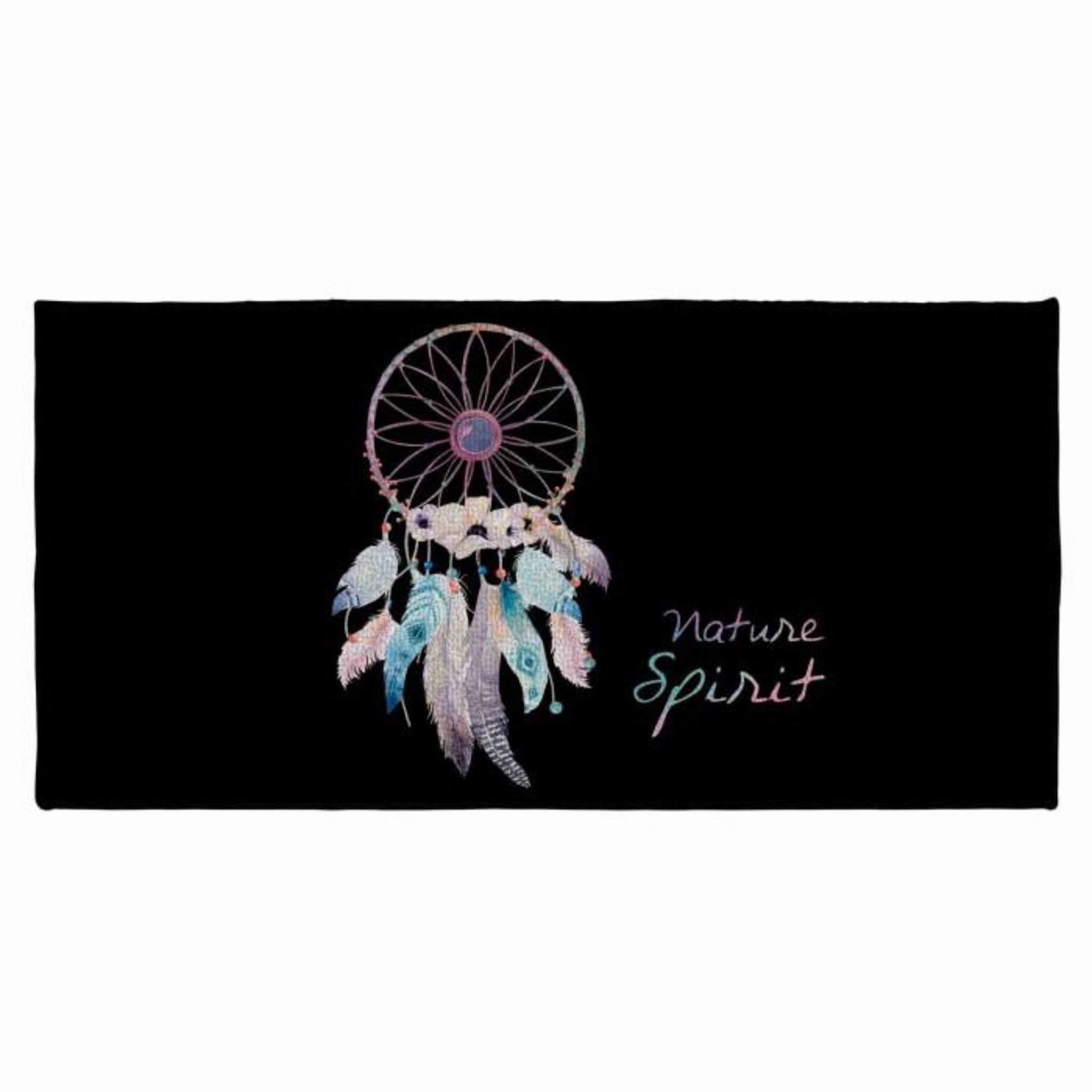 Informations Techniques : Dimensions : L. 115 x l. 57 cm Matières : Polyamide & Latex Spécificités : Antidérapant Pratique & Déco Imprimé : Attrape-Rêves Texte : Nature Spirit Couleur : Noir