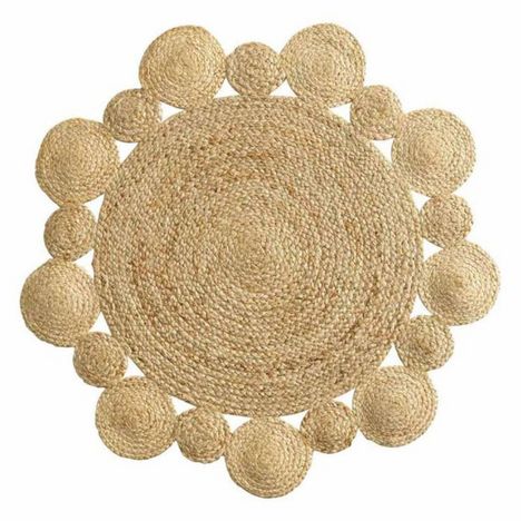 Informations Techniques : Dimensions : D. 90 cm Matière : 100% Jute Spécificités : Pratique & Tendance Tapis Déco Forme Ronde Effet Ajouré Facile d'Entretien Poids : 2,43 kg Couleur : Naturel