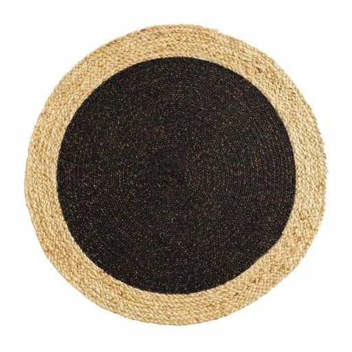 Informations Techniques : Dimensions : D. 90 cm Matières : Jute & Coton Spécificités : Pratique & Tendance Tapis Déco Forme Ronde Facile d'Entretien Poids : 2,02 kg Couleur : Noir & Or