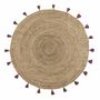 Informations Techniques : Dimensions : D. 120 cm Matière : 100% Jute Spécificités : Pratique & Tendance Tapis Déco Forme Ronde A Pompons Facile d'Entretien Poids : 2 kg Couleur : Bordeaux