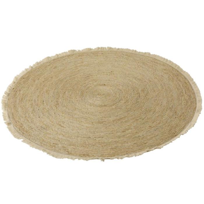 Informations Techniques : Dimensions : D. 120 cm Matières : Ecorce de Maïs & Coton Spécificités : Design & Naturel Tapis Déco Forme Ronde Facile d'entretien & d'utilisation Poids : 2 kg Couleur : Beige & Blanc
