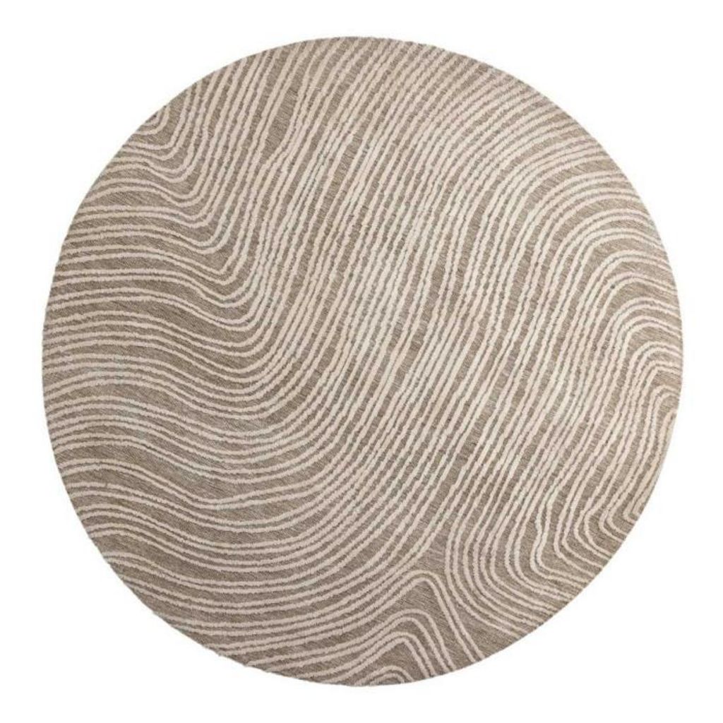 Informations Techniques : Dimensions : D. 200 x H. 1,3 cm Matières : Dessus : Polyester Dessous : Coton Spécificités : Déco & Tendance Tapis rond Design artistique Poids : 10 kg Couleur : Beige
