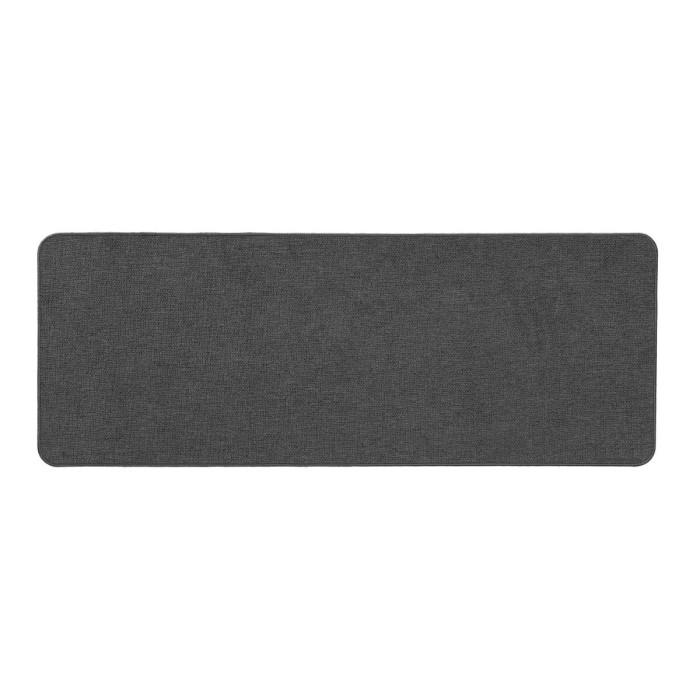 Informations Techniques : Dimensions : L. 120 x l. 45 x H. 1 cm Matières : Dessus : 100% Polyester Dessous : 100% Caoutchouc Spécificités : Pratique & Utile Tapis déco Tissé uni Anti-dérapant Coins arrondis Forme rectangulaire Poids : 0,82 kg Couleur : Anthracite