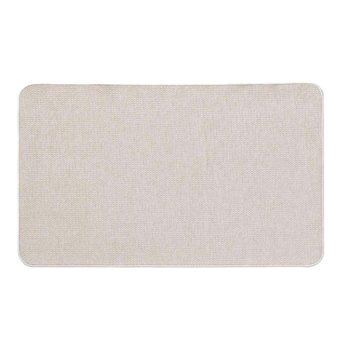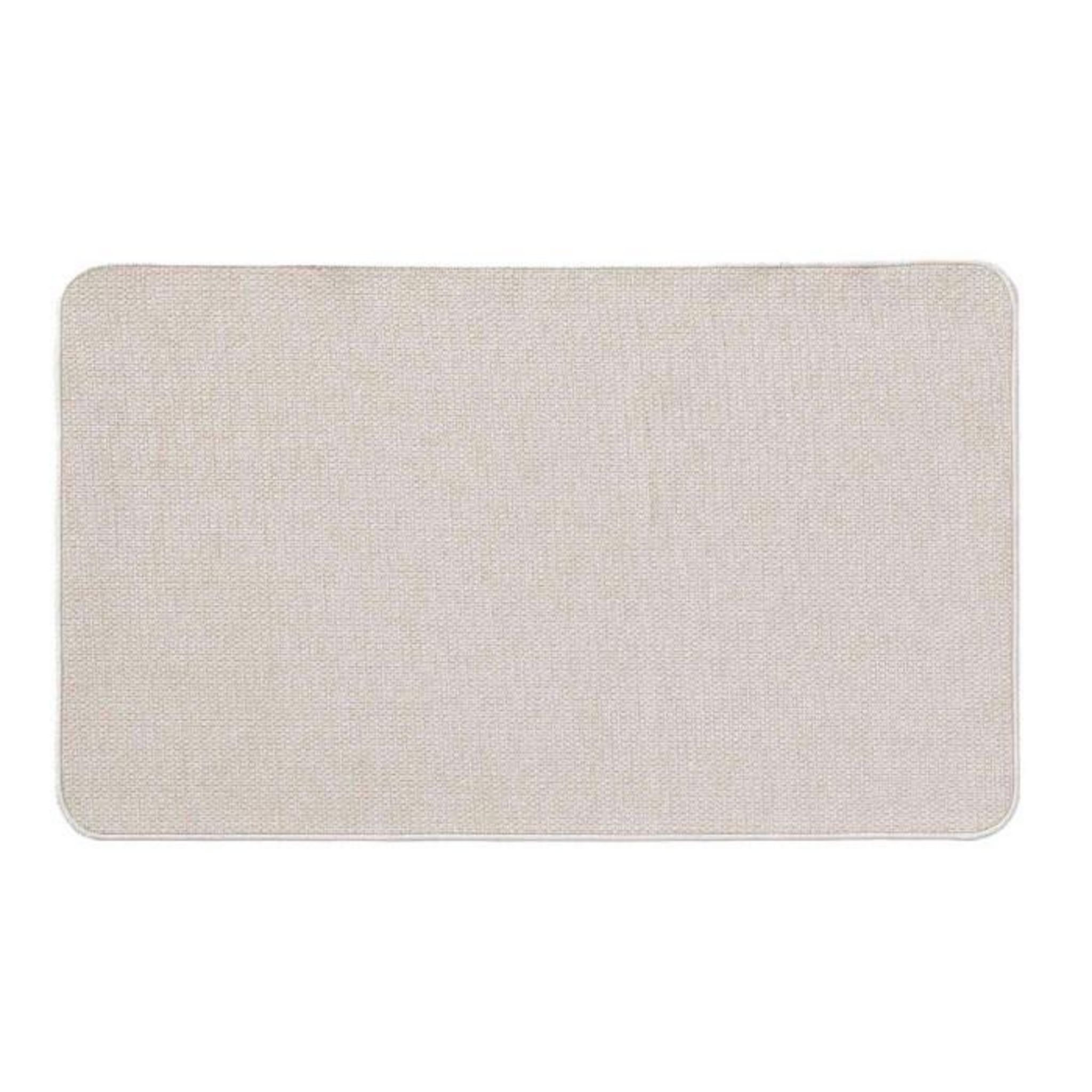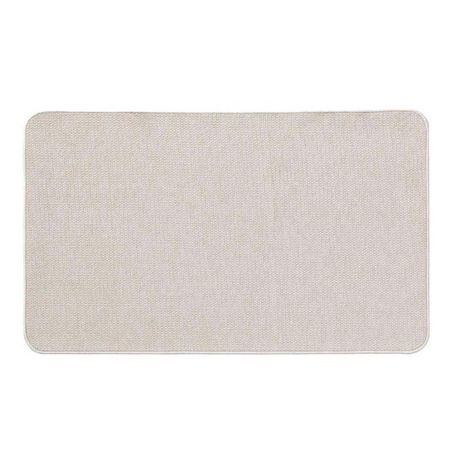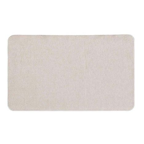Informations Techniques : Dimensions : L. 75 x l. 45 x H. 0,5 cm Matières : Dessus : 100% Polyester Dessous : 100% Caoutchouc Spécificités : Pratique & Utile Tapis déco Tissé uni Anti-dérapant Coins arrondis Forme rectangulaire Poids : 0,50 kg Couleur : Naturel