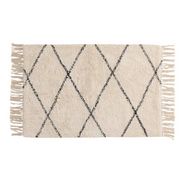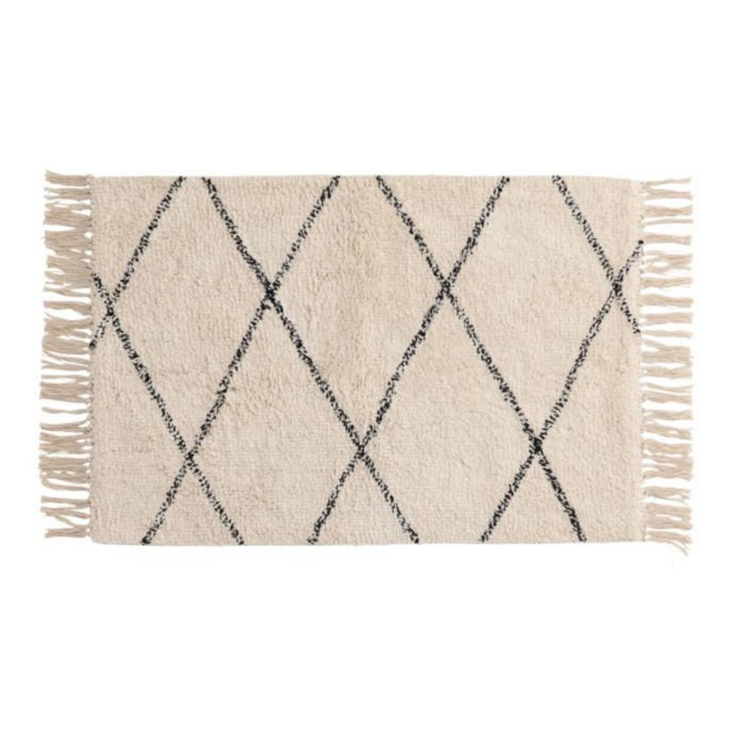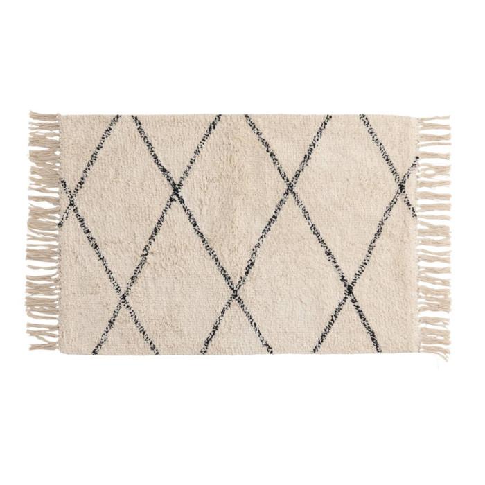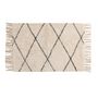 Informations Techniques : Dimensions : L. 80 x l. 50 x H. 1 cm Matière : Coton Spécificités : Pratique & Tendance Tapis déco Avec franges Design lignes Forme rectangulaire Poids : 0,6 kg Couleur : Naturel