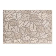 Informations Techniques : Dimensions : L. 230 x l. 160 cm Matière : 100% Polypropylène Spécificités : Pratique & Tendance Tapis déco Tissé à plat Design feuille Forme rectangulaire Poids : 5,8 kg Couleur : Naturel