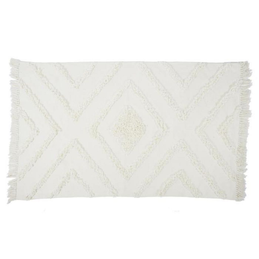 Informations Techniques : Dimensions : L. 120 x l. 170 x H. 0,7 cm Matière : Coton Spécificités : Pratique & Utile Tapis Déco Forme Rectangulaire Motif Ethnique Effet Tufté Poids : 1,8 kg Couleur : Écru